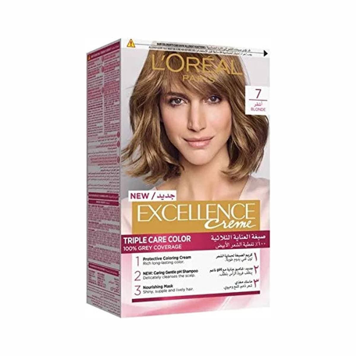 L’Oréal Paris Excellence Crème Triple Care Hair Color – 7 Blonde delivers a natural, luminous blonde shade with advanced care for your hair and scalp. Powered by the Triple Care Colour Ritual, this hair dye protects before, during, and after coloring to ensure rich, long-lasting results.
